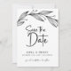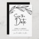 Modern Black & White Eucalyptus Löv Bröllop Spara Datumet