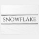 Den vackra formella typografin "SNOWFLAKE" i ett vitt vitt centrum i rand med modern svart typografi framhävs i streck. Vit rand över och under färdigställer sammansättningen.