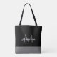 Modern Black White Grått-skript Monogram Namn Tote Bag är en klassdesign som kan bäras varje dag med mode påstående. Bakgrunden är anpassade till alla färg som du vill ha. Mittpunkten har ditt monogram initialt i grått och namn i en vit kalligrafskript.