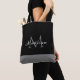 Modern Black White Grått-skript Monogram Namn Tygkasse