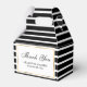 Moderna svarta och vita bröllopsfavoritboxar. Anpassa enkelt de här svarta och vita, randiga bröllopsresrutorna med din händelseinformation.