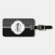 Modern Black White Houndstooth Monogram och Namn Bagagebricka