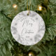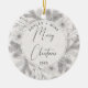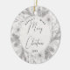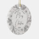 Ett modernt svartvitt och vitt vinterkrans av God jul med utandningsluft och med en iriserande vit bakgrund. Fotot visas tvärtom med svartvita filter, namn och år. Copyright Anastasia Designer, alla höger förbehållna.