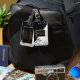 Modern Black White Marble Struktur Snyggt Monogram Bagagebricka