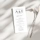 Behålla din elegant för mottagning och sammanhållning med den här moderna menyn för svart och vitt bröllop. Med en minimalistisk layout och ett fet par monogram lägger den här utformningen till en sofistikerad beröring för varje ställe-inställning. Perfekt för att visa dina omsorgsfullt kantade val av måltider kompletterar det ett tidslöst firande samtidigt som man vägleder gästerna genom matupplevelsen i stil.