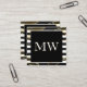 Modern Black White Rand Monogram | Golden Poly Fyrkantigt Visitkort
