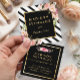 Modern Black White Rand Rosa Blommigt Guld Ram Fyrkantigt Visitkort