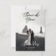 Modern Black White Script Bröllop Photo Tack Kort