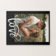 Alla hjärtans pussel har en levande, handskriven typografi "kärlek" med ett foto på en svart bakgrund. Du kan enkelt anpassa fotot.