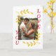 Denna Alla hjärtans-kort har en guldbekransad krans med ett foto och röd typografi "älskar dig" på en vit bakgrund. Du kan enkelt anpassa texten i kortet eller bara ta bort den.