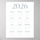 En cooltonad minimalistisk 2026 enkelbladskalender i sofistikerade gråblå nyanser. Ren typografi och balanserad design gör den perfekt för hem, kontor eller klassrum där subtil modern stil möter daglig organisation.