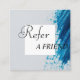 Ta hand om ditt salon- eller spa-företag med den här moderna och professionell referenskortmallen! Med snyggtens blå elegant och typografi är det här anpassadet perfekt för att uppmuntra ord av mun-marknadsföring. Redigera texten enkelt med ditt salon namn, adress och ge kostym information om ditt varumärke. Använda den som en del av ditt bonusprogram - när en kund hänvisar till en vän får båda rabatt vid nästa besök! Ett enkelt men effektivt sätt att öka din kundkrets och visa uppskattning. ✨: Redigerbar text (salon namn, erbjudande, kontaktinformation) Öga-Perfekt för hårstilister, spas och skönhetstävlingar Idealisk för hänvisningsbelöningar eller bonusprogram