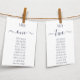 Överst står bordnumret skrivet med handskrift och ordet Bord ovanför med mindre versaler (handskrivna bokstäver). Under dem finns de 10 gästnamnen, i liknande handskrivna bokstäver. All text är marinblå, bakgrunden är vit.