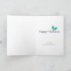 Inspirerad av fåglar som äter vinterbär, har denna moderna, naturinspirerade design en stor Stellerskrika och mindre fåglar, kanske en gärdsmyg och en svartmes. Bären är rikliga, snöbär, vintergröna blåbär och järnekbär. Röda julgransprydnader bidrar till vinterjulens tema. Djärv och grafisk styling sätter detta anpassningsbara kort ifrån andra.