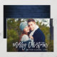 Fotokort för Modern penselskript i God jul - Rustiskt blått trä bakåt
