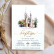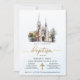 Modern, elegant, dammig blåfärgad Baptism-inbjudan. Utformningen omfattar en vattenfärgad illustration av en kyrka, ett skript för elegant i guld för ord "Baptism", ett kor i guld, och blockera huvudstad brev för information om firande. Om du vill ändra färg och typsnitt väljer du att redigera den här designen ytterligare för att öppna ytterligare anpassningsalternativ.