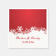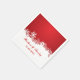 Den moderna pappra napkin från bröllop, vintervit, med vit gräns av snöflingor på ljusröd bakgrund. Perfektens val inför en vinter december bröllop, möhippa, mottagning, förlovning eller årsdag party.