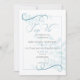 Blek tealblått löv omgivet av ett klassiskt tunt ram och virvelaktigt accenter i smokey teal, Hand-skript calligraphy och koordinerat färg på baksidan. Enkelt ren och färsk för ett modernt bröllop.