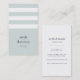 Modern affärskort och chic i ett unikt format för lodrät har tre vita rand i bakgrunden för pastellspa med blå grönt, med ditt namn och namn eller din titel i en attraktiv blandning av gemena serif- och moderna teckensnitt. Lägg till kontaktinformationen för fullt i rikens marinblått. Lämpligt för alla yrken, exempel visas för träningsledare.
