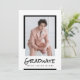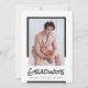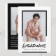 Meddela ditt kommande studenten med favoritfoton och den här enkla designen. Moderna block av svartvitt par med handskriven stil-rubrik. Använda tillbaka till visningen om ytterligare foton och/eller firande-information.