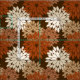 Modern take på ett traditionellt japanskt blom- kimonotrycktyg - stylized blommor skuggar av taupesolbränna, rostar in brunt och beige på en mörk choklad - brun bakgrund