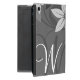 Abstrakt blommönster för contemporary med nyckfulla testar. Modern typografi i stilfull mode för sofistikerade damer, men trendiget nog som imponerar den kalla ung flicka på din gåva, listar. Personifiera detta mini- foliofodral för elegant blom- iPad med ditt namn, den initiala monogramen eller tillfoga din egna beställnings- text. Klicka skräddarsy den för att rotera handstilen, ändrar stilsortsformatet, utformar eller färgar för att skapa din egna unika monogrammed stil. Visade färger: Kolgrå färg som är svartvita. Please ser att vårt lager för mer kvinnlig iPad och iPhone täcker, cases och flott elektroniktillbehör för kvinnor och flickor.