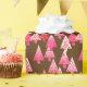 Modern, blomsterförskönad, Julgranar i en silkesfärgad gradient - träd i en korallfärgad rosa och kräm, accentuerad med korall, på en chokladbrun bakgrund