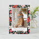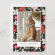 Moderna semesterns fotokort med röda julstjärnor och vinterblommor i nyanser av akva och elfenben kompletteras med tallbarr och salvia gröna blad. Anpassa framsidan av kortet genom att lägga till ditt favoritfoto, semesterhälsning och namn. Baksidan av kortet visar ytterligare två foton och året.