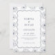 Vår bröllopsinbjudan har en fantastisk blommigt konstvåg ram i blå, förkroppsligande elegans och romantik. Konstigt utformade blommor och bladkaskad längs kant, skapande ett gigantiskt vågliknande mönster som fångar med sina invecklade detaljer. Contemporaryn är fortfarande tidlös, denna utformning vädjar till dem som uppskattar konst och försöker locka sina gäster med ett inslag av naturskönhet och modernt sinne.