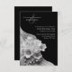 Modern Blommigt Black and White Bröllop- Inbjudningar
