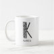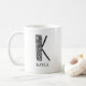 Denna moderna svarta och vita blommigt brev K kan vara helt personlig med ert namn på båda sidor om mugg.