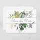 Den här eleganten Spara datumkortet har en iögonfallande blå och grönt löv som matchar den moderna Blommigten | Tema för blå och Grönt Bröllop. Redigera all information på baksidan: Bröllop Datum, Namn, Plats