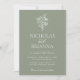 Modern Blommigt Boho Sage Grönt Bröllop Minimalistisk inbjudan. Anpassa enkelt genom att ersätta varje info. Kontrollera förhandsgranskningen innan du lägger till i kundvagn.