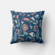 Lägg till en blommigt i vardagsrummet med det här illustrerade dekorativ kudde. Kudden eller kudden har moderna illustrationer i stil av blommor i korall och grädde eller elfenben på färgaden för mynta gröntar som alla ställs mot en marin blå bakgrund.