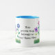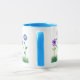 Anpassa denna söt blommigt kaffe mugg med blått läppar och handtag och blommor som växer upp ur gräset, från en handmålad papper kollage av Judy Adamson.
