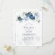 Anpassa vykortet för inbjudningskort för möhippan genom att klicka på knappen "Anpassa" ovan. Kortet har en modern elegant chic dammig blåa blommor med vit, ljusblå och oliv grönt blomning. TIP: Underbar för överraskande party, babyduschar, bröllopsmottagning och pension party.