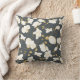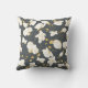 Modern kudde med ett elegant blommönster med vackra guld och vita stiliserade orkidéer på mörkens grått-bakgrund.