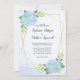 Modern Blommigt Geometric Blue Hydrangea Bröllop Inbjudningar