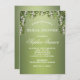 Modern Blommigt Greenery Inbjudningskort för möhippan! Grekland är symboliskt för en ny början. Grey är också en symbol för strävan efter personlig passion och livskraft. Naturens neutralt, PANTONE Greenery (enligt Pantone Färg Institute), är en mångsidig "trans-säsong"-skugga. Så jag kärlek den här nya gult-grönt-skuggan och du kan välja att vara ditt bröllop-tema. Den här designen har vita hängande blommor, grönt löv, på en grön djup guld-bakgrund. Använda Anpassa verktyg om du vill lägga till information, ändra typsnitt och färg. Se mer i Greenery Bröllop Collection.