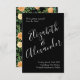 Modern Blommigt i Black & Peach Bröllop Inbjudningar