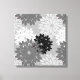 Modern Blommigt Kimono-utskrift, Grått, svartvitt Canvastryck