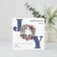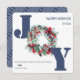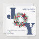 Ett modernt Joy-skript med en elegant blommigt vattenfärgsutandning med grönt löv, heliga och rödpeonier med en geometrisk abstrakt rand mönster på baksidan. Glad helg! En enkel och elegant vinter helgdagar hälsning.