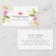 affärskorten för blommigt av elegant har en bukett med vattenfärgad målad persilja och blommor av ro i pastellskuggor av rosa och vår grönt. Ert namn och titel eller yrke visas i mitten i ett modernt brev på ett vitt rektangulärt inslag, med en rosa läppkyss. Lägg till kontaktuppgifter för fullt, inklusive social-medielänkar eller -handtag, på baksidan. Ett val av chic för makeup-artister, stilist och mycket annat.