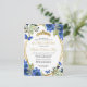 Modern Glam Blommigt Botanical Navy Blue Royal Blue Guld Tiara Gnistra Glitter OSA Birthday Quinceañera-inbjudan