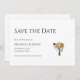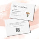 QR-Blommigt Svart och vitt Spara datumkortet, med rosa ros-design och enkel typografi. Med anpassadets svarta text kan du lägga till egna uppgifter. Om du väljer att lämna av den här funktionen tar du bort texten i fält för QR-koden. Den här minimala designen utgör ett underbart komplement till planeringsverksamheten i bröllop.