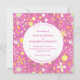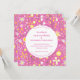 Modern botanisk vild blomma mönster i gult, vit och grönt spridd på en ljus rosa för lycklig och optimistisk känsla. En fantastisk koordinerande fyrkantsinbjudan som du kan anpassa till kostym i ditt eget firande. Originalkonst av Nic Squirrell.