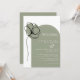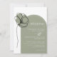 Den här enkla och moderna grönten och inbjudan till ett vitt bröllop har en vacker enblomma och ett modernt skript och din bröllop-info på en trendig båge, och din bröllop webbplats på baksidan. Denna inbjudan till coola färg är perfekt för bröllopet i vår, sommaren, hösten eller vintern och är lätt att anpassa med din egen bröllop-information.