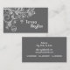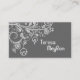 Modern blommigt-snurrare och fåglars grått-visitkortsmall, med vita snurrar och prickad linjer med löv, blommor och fåglar på hängande ringar på gråttets bakgrund. Den här söta, moderna designen har en känsla för det och är perfekt för använda för privatpersoner eller professioneller.