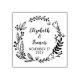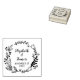 Frimärke i denna "Spara datum"-gummi har en blomma/grenar ram med ett par namn och datum.