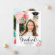 En modern, enkel svart och vit skriptpensel från student med två foton från studenten. Lägg till meddelandet på baksidan med vattenfärg och studentmössa för blommigt av rosa elegant.